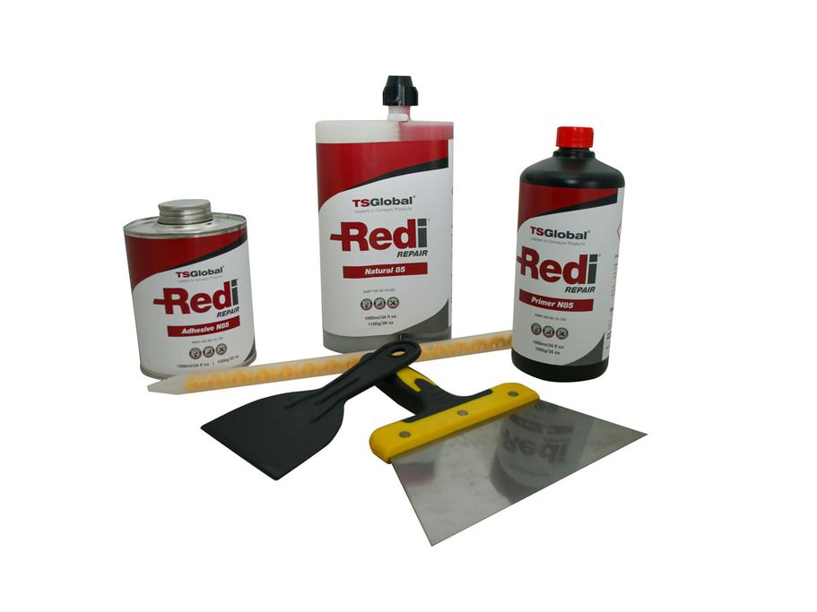 Redi Repair provides a simple, efficient and cost effective solution for a damaged or torn conveyor belt. It delivers a fast curing, high quality bond to the belt surface. The two-part 100% solids polyurethane material also provides excellent abrasion and tear resistance.