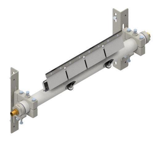 TUFF P Spray Secondary Belt Cleaners deliver effective long term cleaning with minimal maintenance. Independent shock absorbing cushions provide constant tensioning to the high grade tungsten tips that will individually self-adjust to irregular contours of belt surfaces. Poles have incorporated spray jets allowing the introduction of water to help dislodge carry back fines embedded into the belt's surface and to lubricate cleaner tips or blades. Significant increases in cleaner performance and life will be delivered when water sprays are utilised. Cushions are angled back to form a very safe non aggressive position to the belt while the tip attack angle remains at 90 degrees. Spray jets are angled at 45 degrees to the belt for a high pressure, low volume spray. It is recommended that a TUFF Water Control Board be utilised for optimum control and filtration. Also available in Reinforced Spray Pole and Custom Built models. A range of cushions, tips and spray jet sizes are available for different applications including vulcanised and mechanical spliced belts. Suitable for underground, hard rock and metal mining, aggregate, bulk material handling, and wood products operations. Maximum Belt Speed - 6 m/sec. Water consumption 7.8 ltr/m @ 3 bar with Size 10 Jets Not suitable for Reversing Belts - refer to TUFF R or TUFF Line Belt Cleaners for this application.