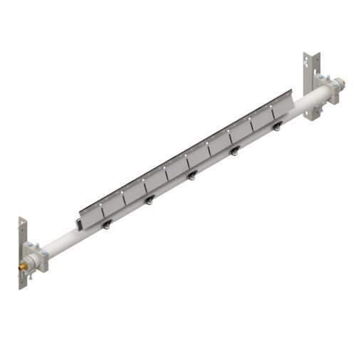 TUFF P Spray Secondary Belt Cleaners deliver effective long term cleaning with minimal maintenance. Independent shock absorbing cushions provide constant tensioning to the high grade tungsten tips that will individually self-adjust to irregular contours of belt surfaces. Poles have incorporated spray jets allowing the introduction of water to help dislodge carry back fines embedded into the belt's surface and to lubricate cleaner tips or blades. Significant increases in cleaner performance and life will be delivered when water sprays are utilised. Cushions are angled back to form a very safe non aggressive position to the belt while the tip attack angle remains at 90 degrees. Spray jets are angled at 45 degrees to the belt for a high pressure, low volume spray. It is recommended that a TUFF Water Control Board be utilised for optimum control and filtration. Also available in Reinforced Spray Pole and Custom Built models. A range of cushions, tips and spray jet sizes are available for different applications including vulcanised and mechanical spliced belts. Suitable for underground, hard rock and metal mining, aggregate, bulk material handling, and wood products operations. Maximum Belt Speed - 6 m/sec. Water consumption 19.5 ltr/m @ 3 bar with Size 10 Jets Not suitable for Reversing Belts - refer to TUFF R or TUFF Line Belt Cleaners for this application.